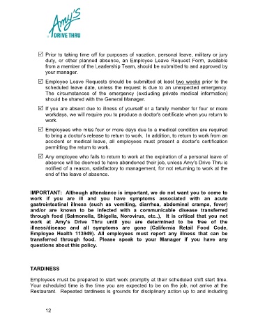 absence will be deemed to have abandoned their job, unless Amy’s Drive Thru is