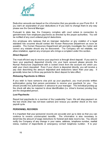 garnishments from employee paychecks as directed by the proper authorities. You will