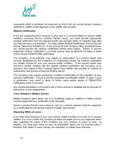 reasonable effort to schedule the treatment so that it will not unduly disrupt Company