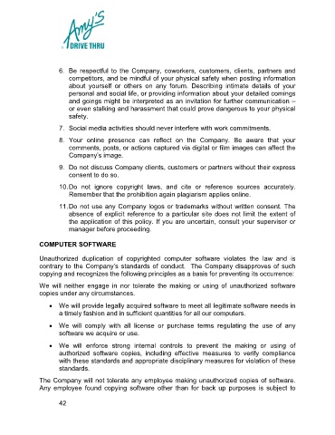 6. Be respectful to the Company, coworkers, customers, clients, partners and