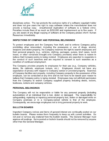 weapons and stolen property, the Company reserves the right to search employees and