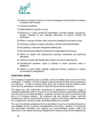 25. Failure to comply with Restaurant’s uniform and dress requirements.