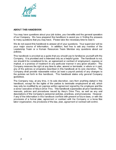 a senior executive of Amy’s Drive Thru. This handbook supersedes all prior handbooks,