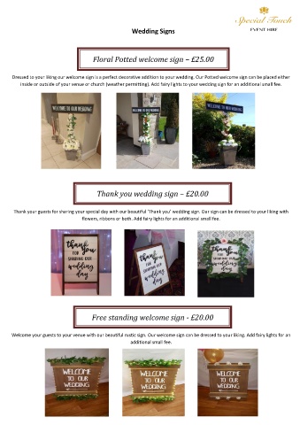 inside or outside of your venue or church (weather permitting). Add fairy lights to your wedding sign for an additional small fee.