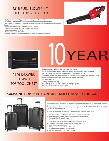 M18 FUEL BLOWER KIT - BATTERY & CHARGER 10 YEAR 41” 6-DRAWER DEWALT TOP TOOL CHEST SAMSONITE OPTO PC HARDSIDE 3-PIECE NESTED LUGGAGE