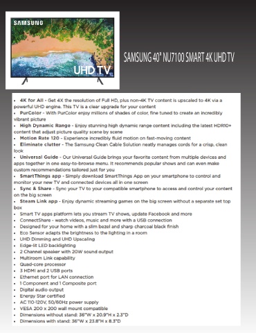 SAMSUNG 40" NU7100 SMART 4K UHD TV