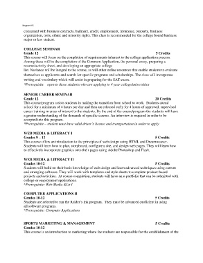 list. Naviance will be integral to the course, as will other online resources that enable students to evaluate