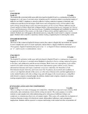 language arts in all areas of communication. Emphasis is placed on effective writing, analytical response