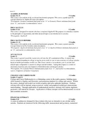 *Prerequisite: Algebra II minimum final grade of an “A” or Algebra II Honors minimum final grade of