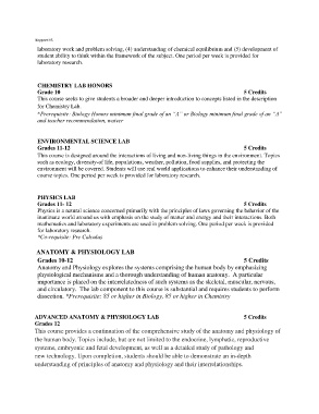 dissection. *Prerequisite: 85 or higher in Biology, 85 or higher in Chemistry
