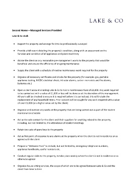 Organise house‐sitting services, the scope of which are to be agreed between Lake & Co and the