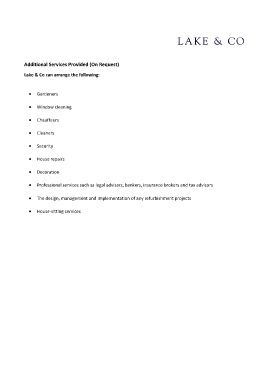 Lake & Co can arrange the following:
