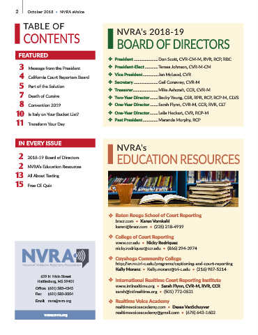 2 October 2018 • NVRA eVoice NVRA’s 2018-19