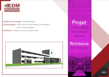 Maître D’ouvrage : Projet Extension De L’école Molière À Casablanca Mission : Études Et Suivi Structures École Médiathèque Jeunesse Architecte Benoit Dupuis