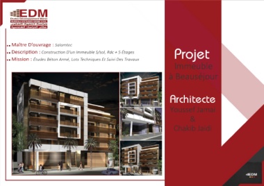 Maître D’ouvrage : Salamtec Projet Mission : Études Béton Armé, Lots Techniques Et Suivi Des Travaux Immeuble à Beauséjour Architecte Youssef Jamai & Chakib Jaidi