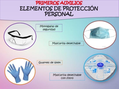 ELEMENTOS DE PROTECCIÓN PERSONAL Monogafas de seguridad Mascarilla desechable Guantes de látex Mascarilla desechable con filtro