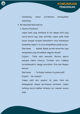 komunikan seperti itu atau mengalihkan pembicaraan.