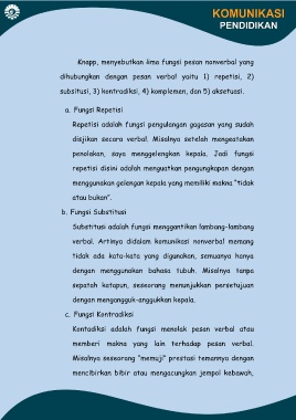 Knapp, menyebutkan lima fungsi pesan nonverbal yang