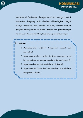 akademis di Indonesia. Budaya berbicara sebagai bentuk