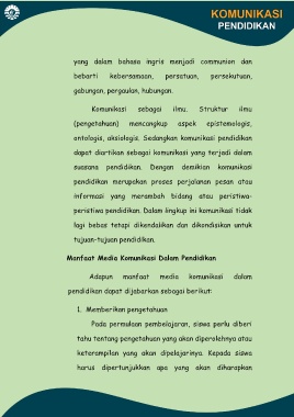 ontologis, aksiologis. Sedangkan komunikasi pendidikan