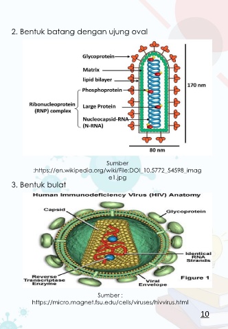 2. Bentuk batang dengan ujung oval Sumber :https://en.wikipedia.org/wiki/File:DOI_10.5772_54598_imag e1.jpg 3. Bentuk bulat Sumber : https://micro.magnet.fsu.edu/cells/viruses/hivvirus.html 10