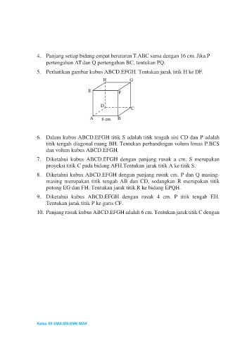 8. Diketahui kubus ABCD.EFGH dengan panjang rusuk cm. P dan Q masing-