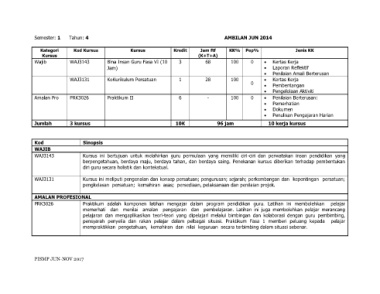 Semester: 1 Tahun: 4 AMBILAN JUN 2014