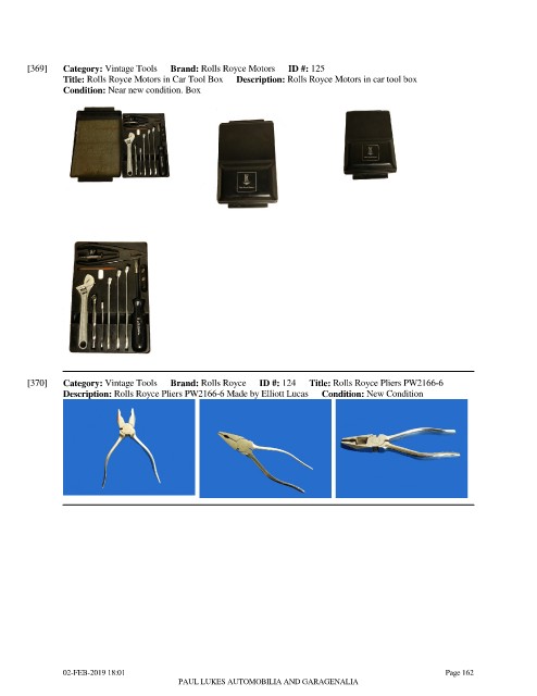 [369] Category: Vintage Tools Brand: Rolls Royce Motors ID #: 125