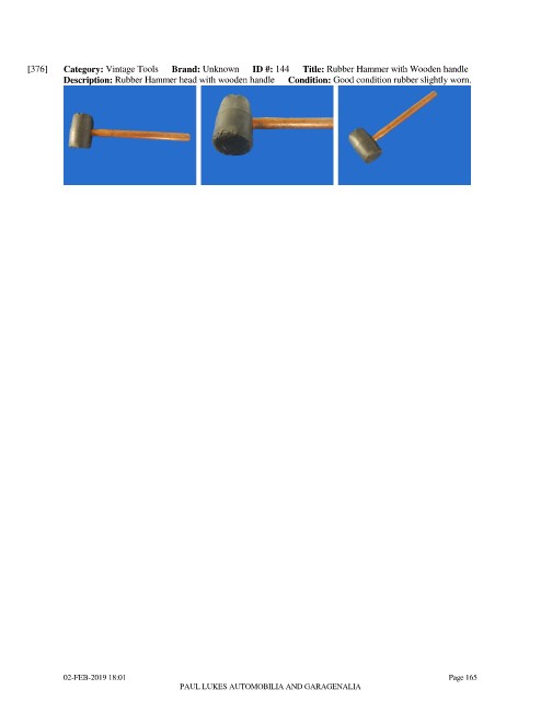 [376] Category: Vintage Tools Brand: Unknown ID #: 144 Title: Rubber Hammer with Wooden handle
