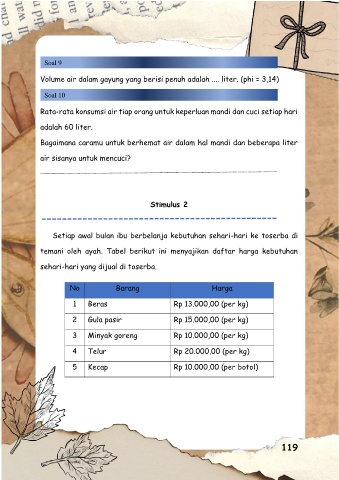 temani oleh ayah. Tabel berikut ini menyajikan daftar harga kebutuhan