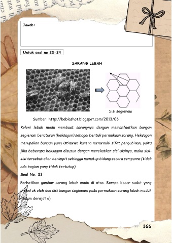 Perhatikan gambar sarang lebah madu di atas. Berapa besar sudut yang