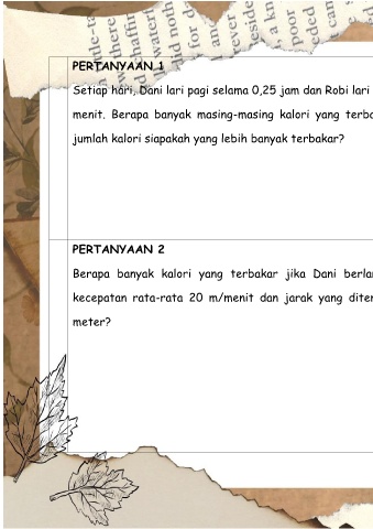 meter? Ditanya : Waktu tempuh (t) dan banyak kalori? 1
