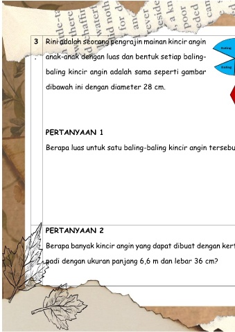 3 Rini adalah seorang pengrajin mainan kincir angin Diketahui : Kincir angin yang terdiri dari 3 1