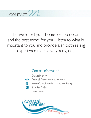 Dawn Henry Dawn@Dawnhenryrealtor.com www.Coastalpremier.com/dawn-henry 619.564.2238