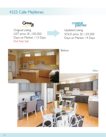 4325 Calle Mejillones Original Listing LIST price: $1,100,000 Days on Market: 113 Days Did Not Sell Updated Listing SOLD price: $1,129,000 Days on Market: 14 Days Before After 13
