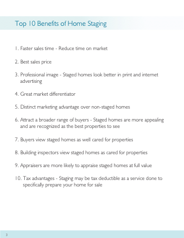 10. Tax advantages - Staging may be tax deductible as a service done to specifically prepare your home for sale