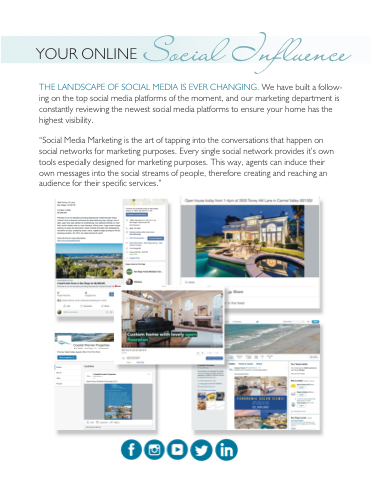 THE LANDSCAPE OF SOCIAL MEDIA IS EVER CHANGING. We have built a follow- ing on the top social media platforms of the moment, and our marketing department is constantly reviewing the newest social media platforms to ensure your home has the highest visibility.