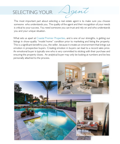 What sets us apart at Coastal Premier Properties, and is one of our strengths, is getting our listings in show-quality “model home” condition prior to marketing and listing the property. This is a significant benefit to you, the seller, because it creates an environment that brings out emotion in prospective buyers. Creating emotion in buyers can lead to a record sales price. An emotional buyer is typically one who is very committed to sticking with their purchase and ensuring the property closes. An analytical buyer may only be looking at numbers and be less personally attached to the process.