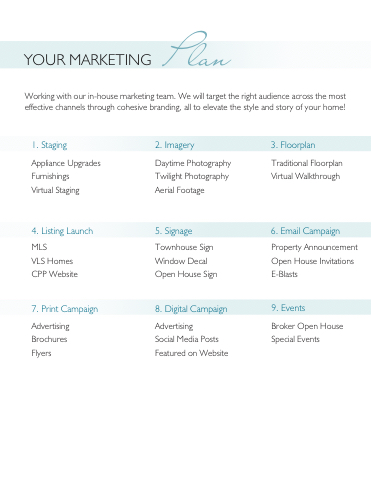 Working with our in-house marketing team. We will target the right audience across the most effective channels through cohesive branding, all to elevate the style and story of your home!