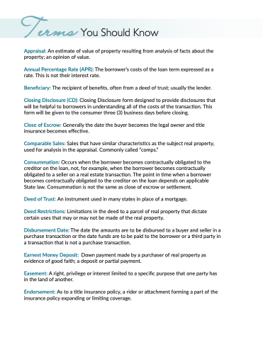 Close of Escrow: Generally the date the buyer becomes the legal owner and title insurance becomes effective.