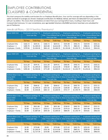This chart compares the tenthly contributions for our Employee Benefit plans. Your cost for coverage will vary depending on the