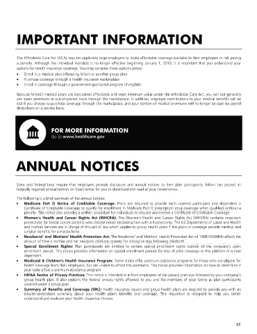 IMPORTANT INFORMATION • • • FOR MORE INFORMATION ANNUAL NOTICES • • • • • • • 23