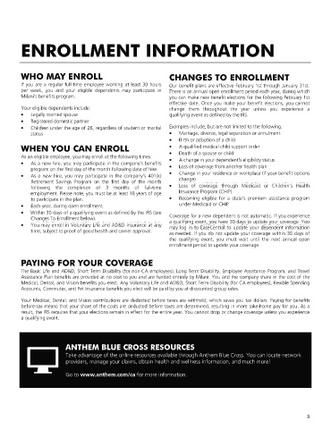ENROLLMENT INFORMATION WHO MAY ENROLL CHANGES TO ENROLLMENT • • • • • WHEN YOU CAN ENROLL • • • • • • • • • • • • PAYING FOR YOUR COVERAGE ANTHEM BLUE CROSS RESOURCES 3