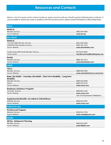 Below is a list of insurance carrier contacts should you require assistance with your benefit questions following open enrollment. If
