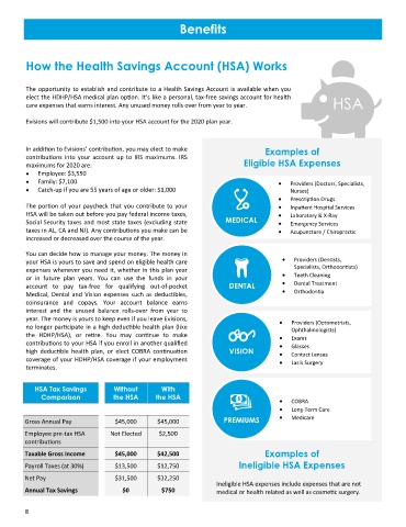 Evisions will contribute $1,500 into your HSA account for the 2020 plan year.