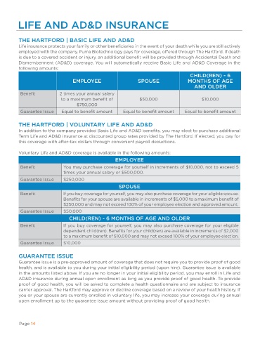 employed with the company. Puma Biotechnology pays for coverage, offered through The Hartford. If death