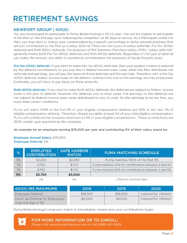 Puma will match 100% of the first 3% of your eligible compensation deferral and 50% of the next 2% of