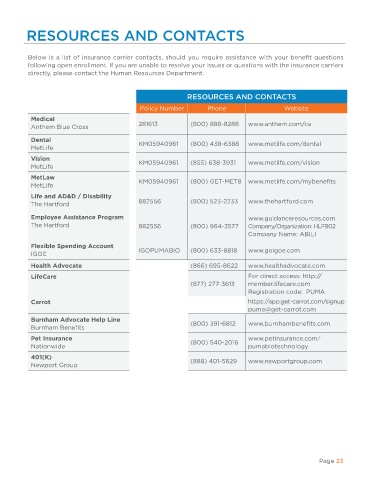 Below is a list of insurance carrier contacts, should you require assistance with your benefit questions