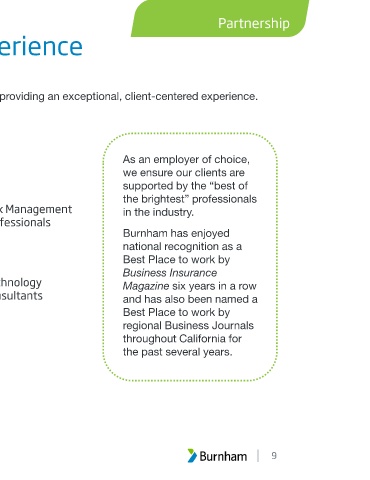 The people who work at Burnham as passionate about providing an exceptional, client-centered experience.