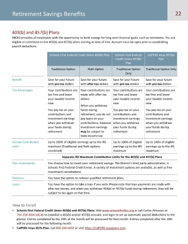 Schools First Federal Credit Union 403(b) Plan    Schools First Federal   CalPERS Voya 457(b)